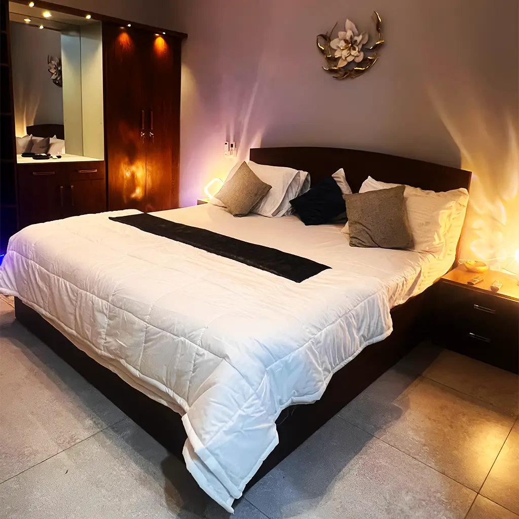 Nestled in the vibrant heart of Karachi, 14 Star Guest House offers a perfect blend of luxury and tranquility for business travelers and vacationers alike. Our guest house is designed to provide a “home away from home” atmosphere, featuring modern aesthetics and top-tier amenities. Whether you’re visiting for a quick business meeting or an extended family stay, we ensure every detail of your visit is handled with care.